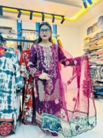 এই থ্রি-পিসে ব্যবহার করা হয়েছে সফট জর্জেট ও লাইটওয়েট অর্গানজা ফেব্রিক, যা আপনাকে দেবে অতুলনীয় আরাম ও ফ্যাশনের নিখুঁত অনুভব। পাকিস্তানি ডিজাইনের আধুনিক ছোঁয়া ও হ্যান্ডফিনিশ লুক এটিকে করেছে অনন্য।